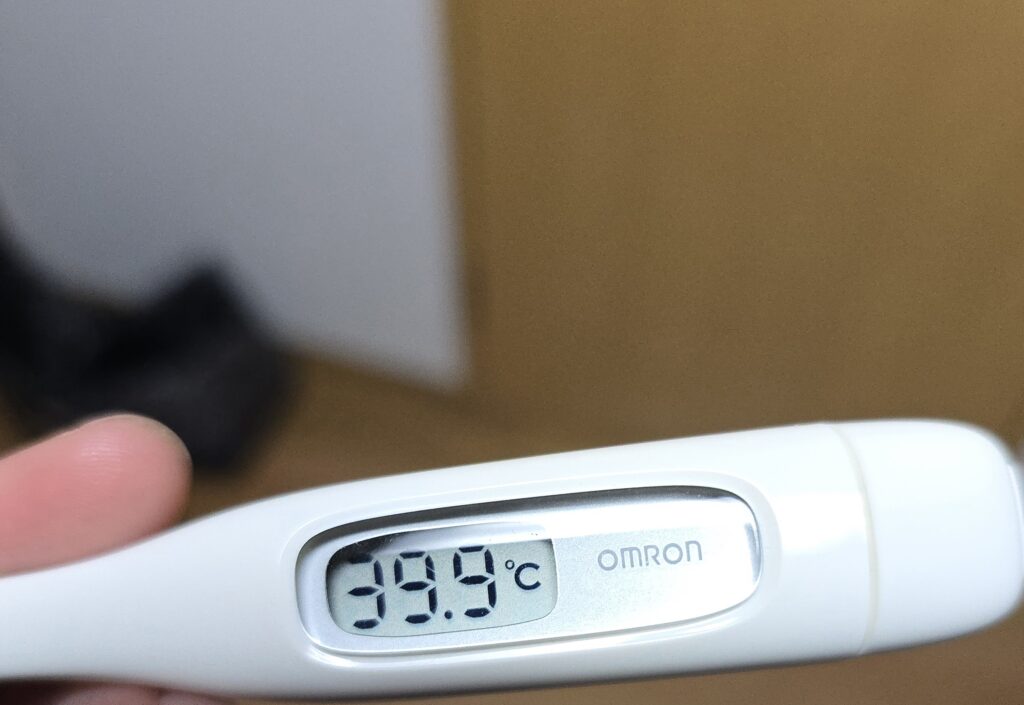 ピーク時に熱を測ると39.9℃だった。どうりで動けないわけだわ。