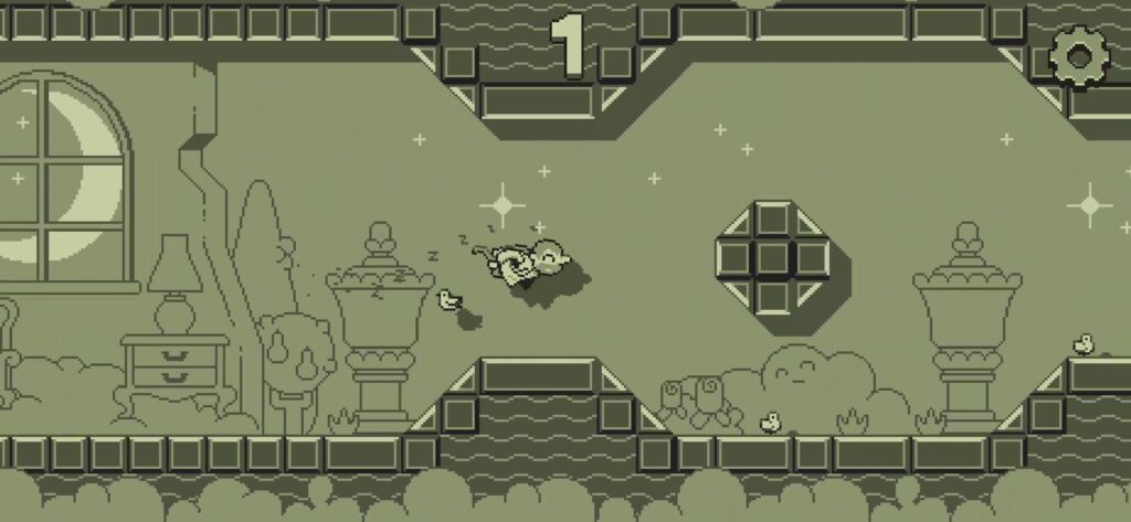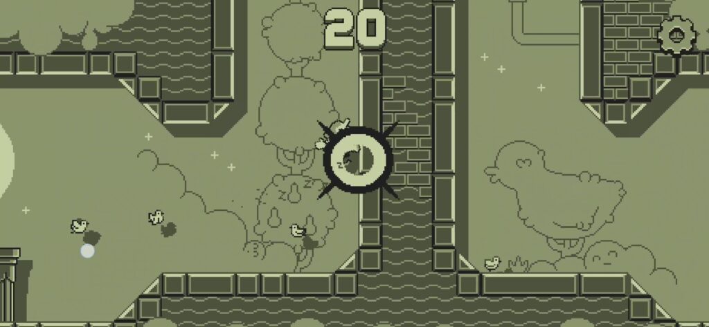 ランダムに繋がる地形を飛び回り、壁に衝突する事なくハトを多く集めるというだけのゲームだ。