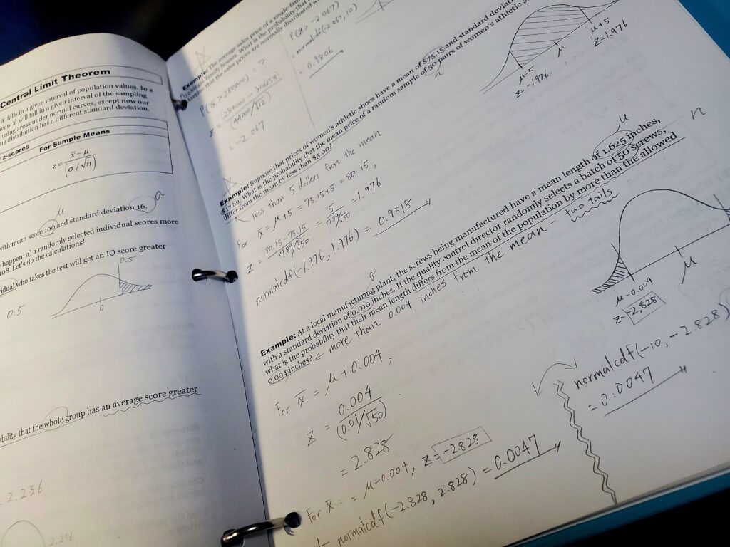 留学中の授業プリント(統計学)のファイルを眺めながら