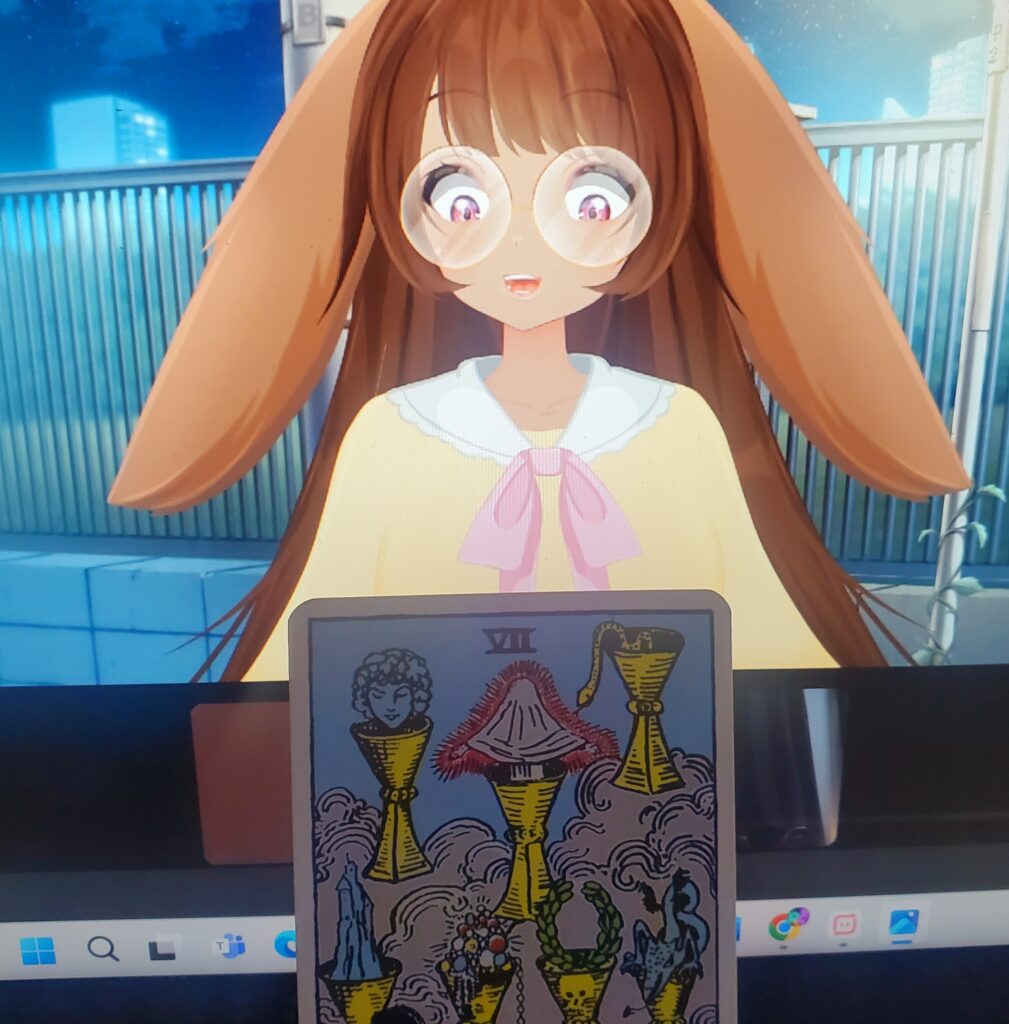 新品同然のデッキから『カップの7』のイラストを取り出してみると…
